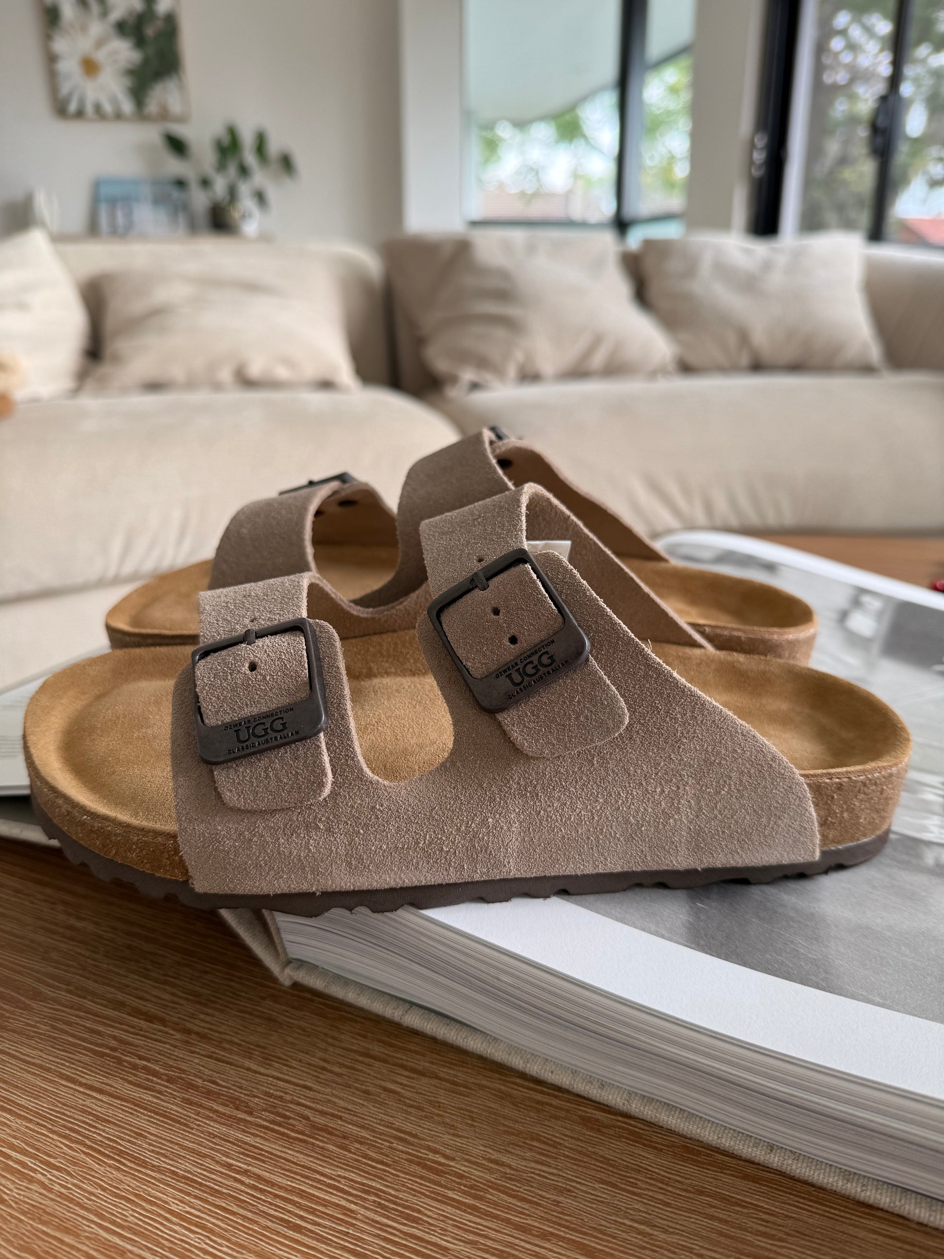Experience ultimate comfort and style with these premium slippers. Crafted with genuine cow skin leather, they offer unmatched durability and a luxurious feel. The soft cow skin lining and insole provide superior cushioning and support for your feet, making every step a delight. The lightweight EVA outsole ensures excellent grip and flexibility. Whether you're lounging at home or running errands, these slippers are perfect for any occasion. Treat your feet to the finest quality and indulge in the luxury of OZUGG Aussie Victoria Suede Leather Unisex Slippers. Step into comfort today!